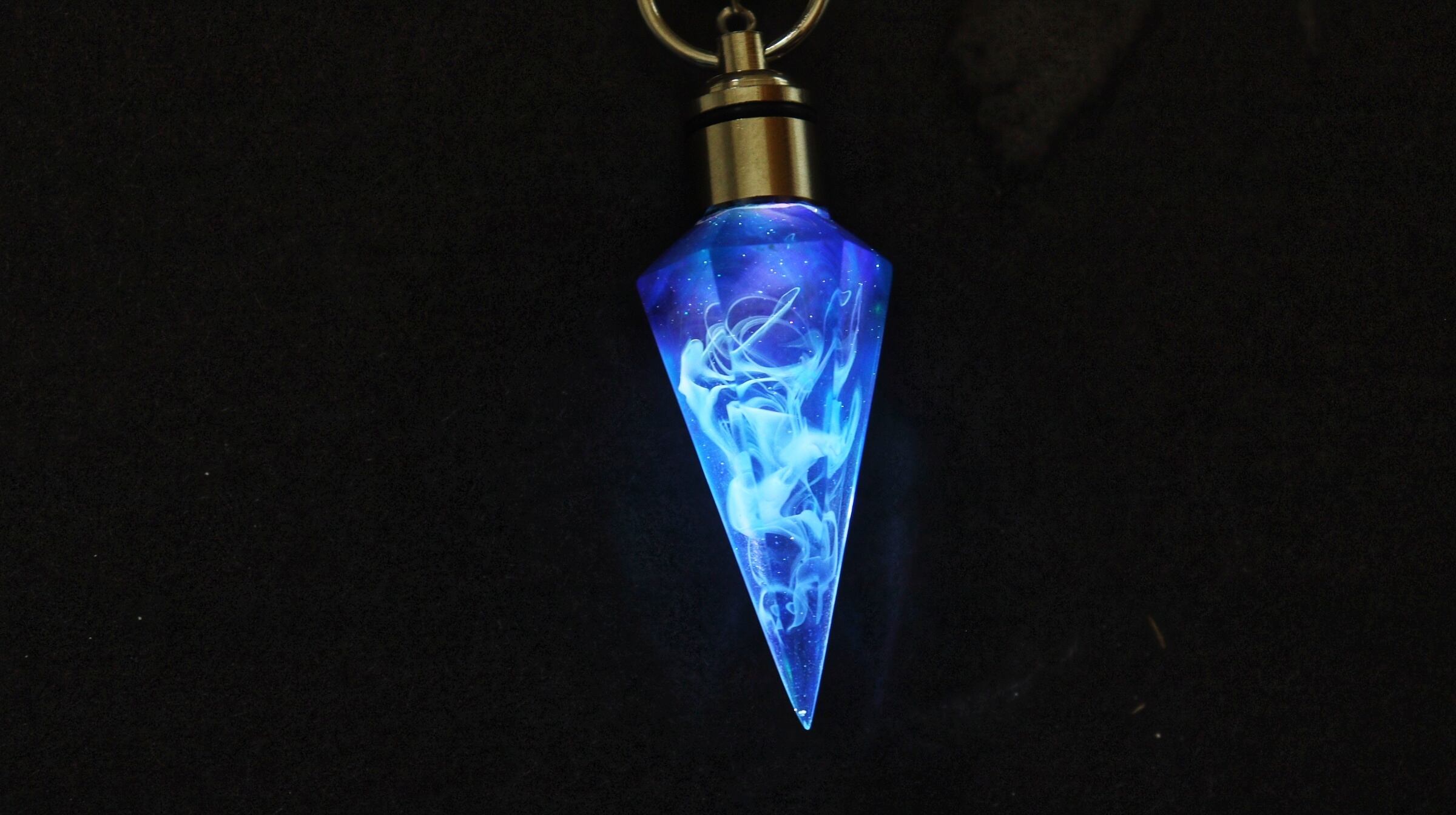 クリアな透明感と美しいパープル×ブルーのグラデーションが魅力のレジンペンデュラム。パウダー青の輝きと磨かれた仕上げによって、光が透過し、輝きを放ちます。使い道は様々で、単なるインテリアとしてだけでなく、エネルギーの伝達や占いグッズとしても使えます。手作りのため、一つ一つの色やデザインが異なるため、それぞれがオリジナルの魅力を持ちます。あなただけの特別なペンデュラムを手に入れて、大切な人生の選択や決断のサポートをしてみませんか?
