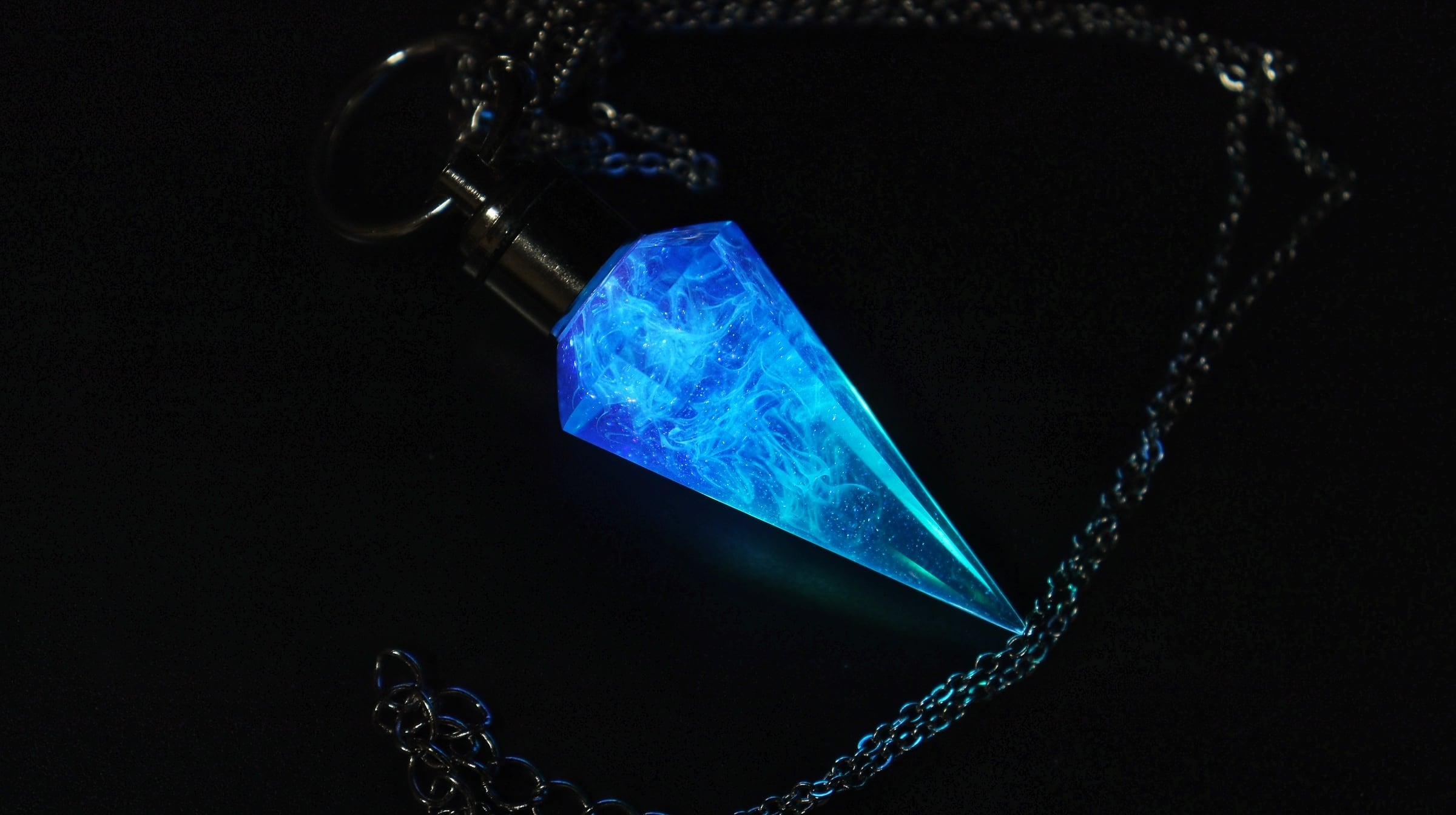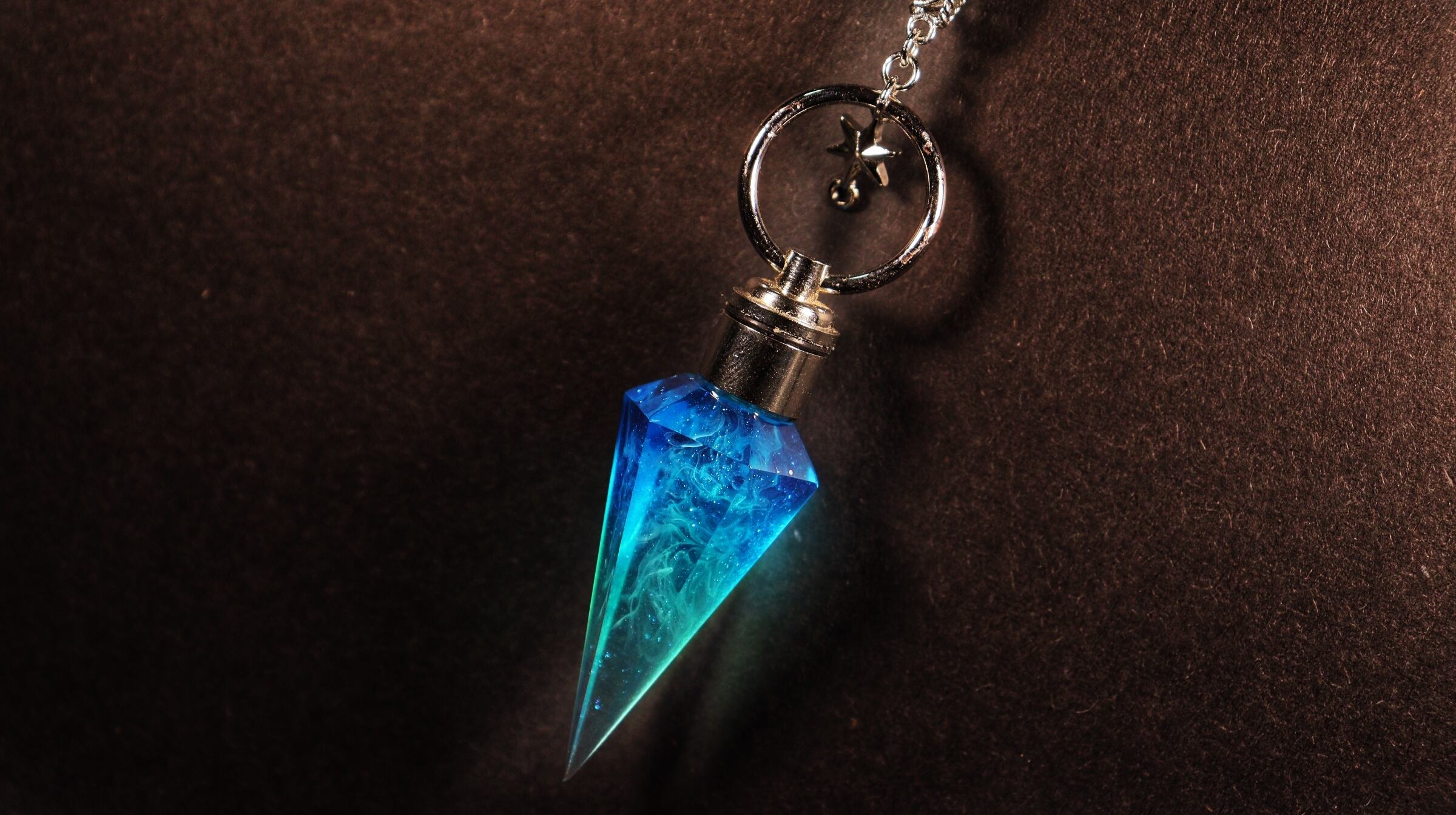 クリアな透明感と美しいパープル×ブルーのグラデーションが魅力のレジンペンデュラム。パウダー青の輝きと磨かれた仕上げによって、光が透過し、輝きを放ちます。使い道は様々で、単なるインテリアとしてだけでなく、エネルギーの伝達や占いグッズとしても使えます。手作りのため、一つ一つの色やデザインが異なるため、それぞれがオリジナルの魅力を持ちます。あなただけの特別なペンデュラムを手に入れて、大切な人生の選択や決断のサポートをしてみませんか?