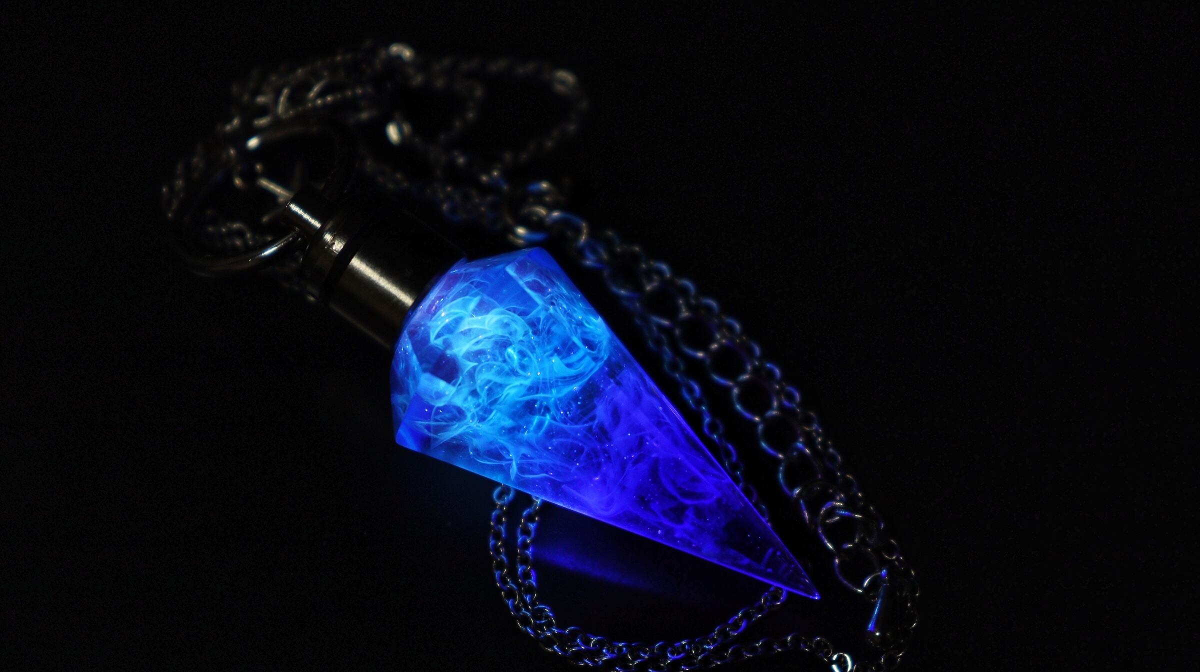 クリアな透明感と美しいパープル×ブルーのグラデーションが魅力のレジンペンデュラム。パウダー青の輝きと磨かれた仕上げによって、光が透過し、輝きを放ちます。使い道は様々で、単なるインテリアとしてだけでなく、エネルギーの伝達や占いグッズとしても使えます。手作りのため、一つ一つの色やデザインが異なるため、それぞれがオリジナルの魅力を持ちます。あなただけの特別なペンデュラムを手に入れて、大切な人生の選択や決断のサポートをしてみませんか?
