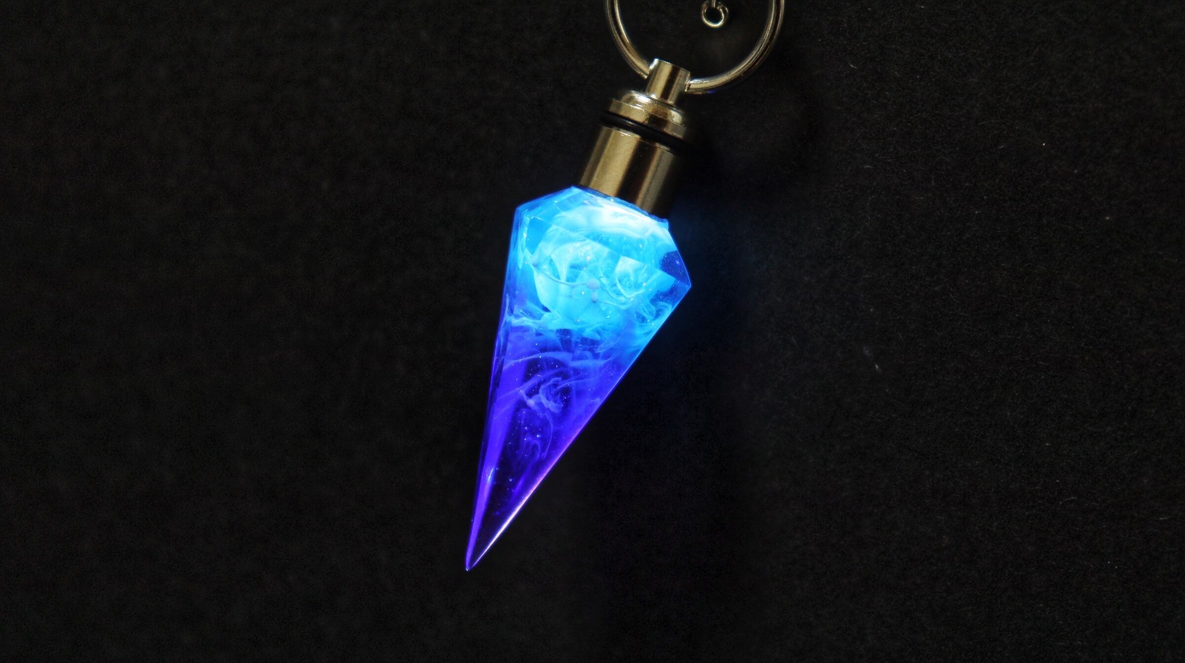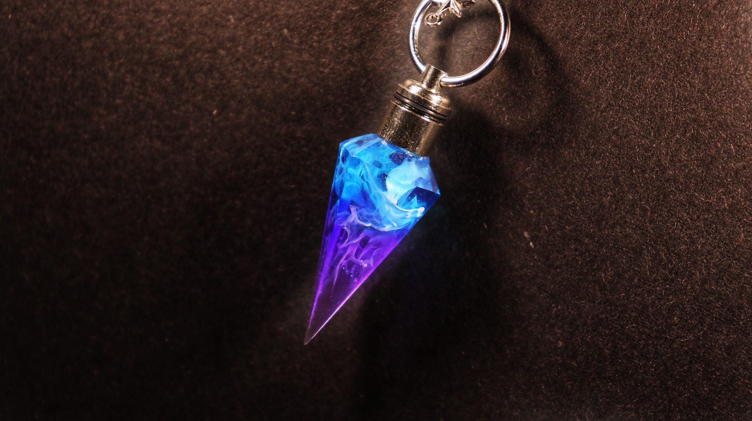 クリアな透明感と美しいパープル×ブルーのグラデーションが魅力のレジンペンデュラム。パウダー青の輝きと磨かれた仕上げによって、光が透過し、輝きを放ちます。使い道は様々で、単なるインテリアとしてだけでなく、エネルギーの伝達や占いグッズとしても使えます。手作りのため、一つ一つの色やデザインが異なるため、それぞれがオリジナルの魅力を持ちます。あなただけの特別なペンデュラムを手に入れて、大切な人生の選択や決断のサポートをしてみませんか?